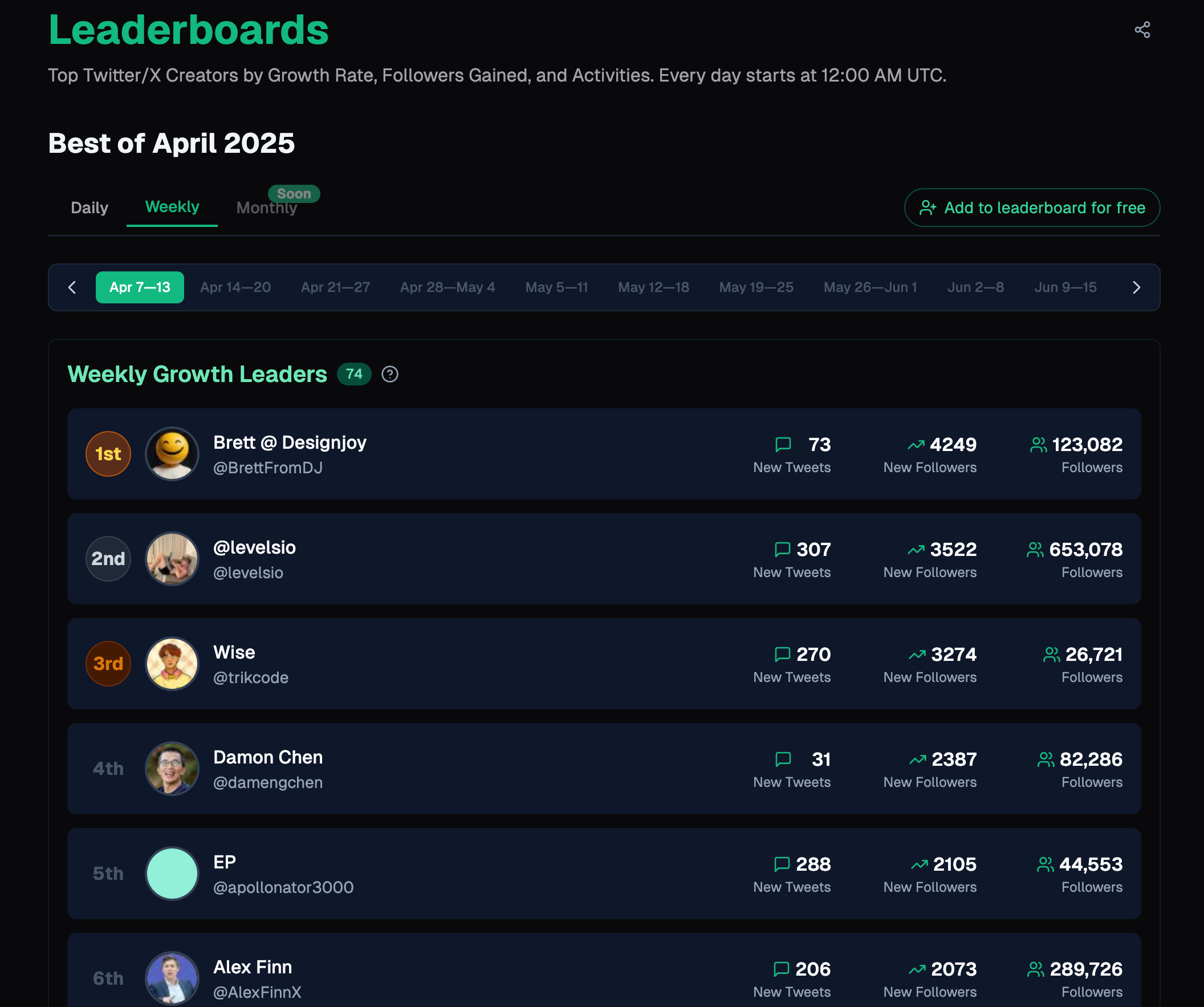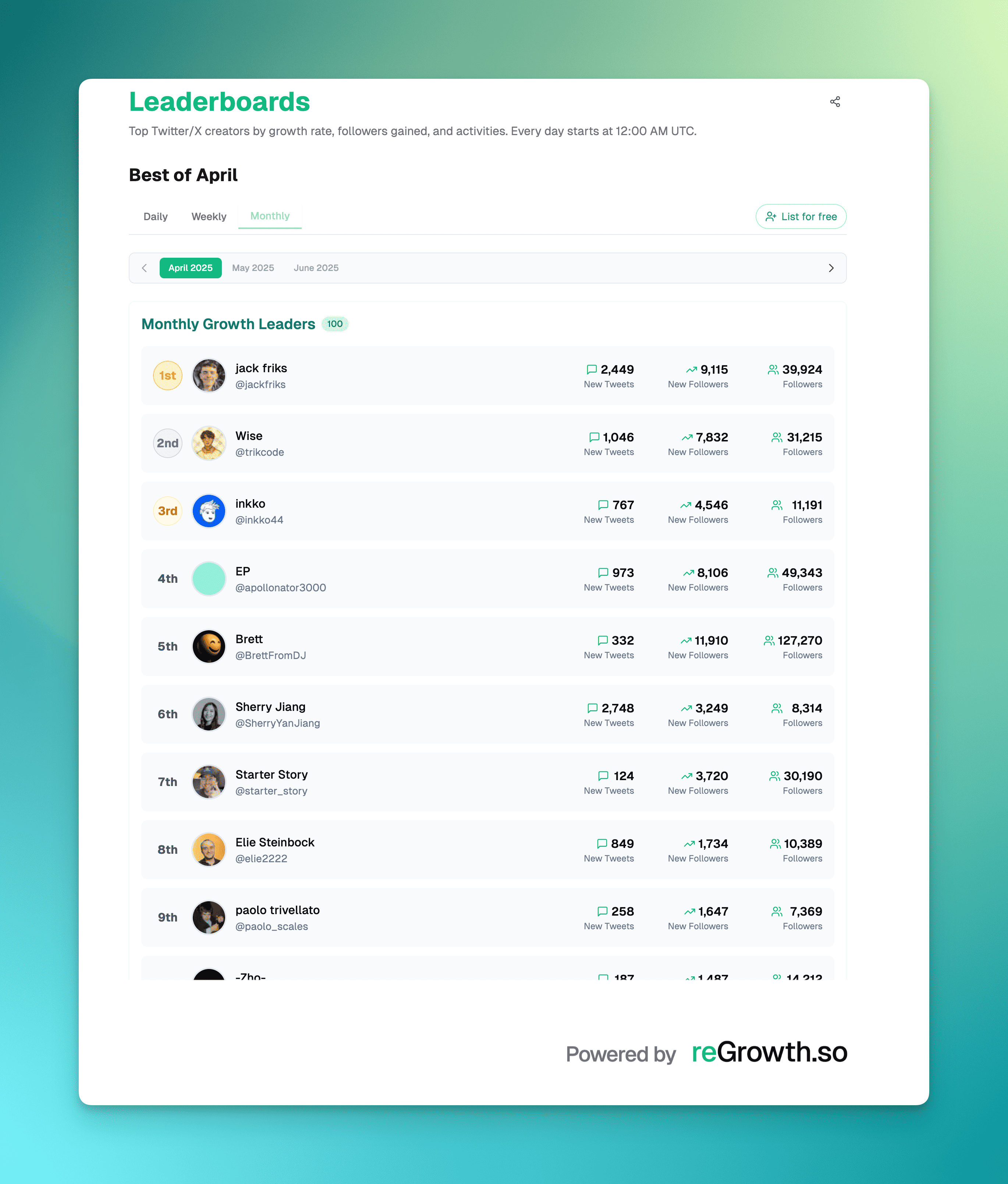 Access the new leaderboard at regrowth.so/leaderboards/monthly