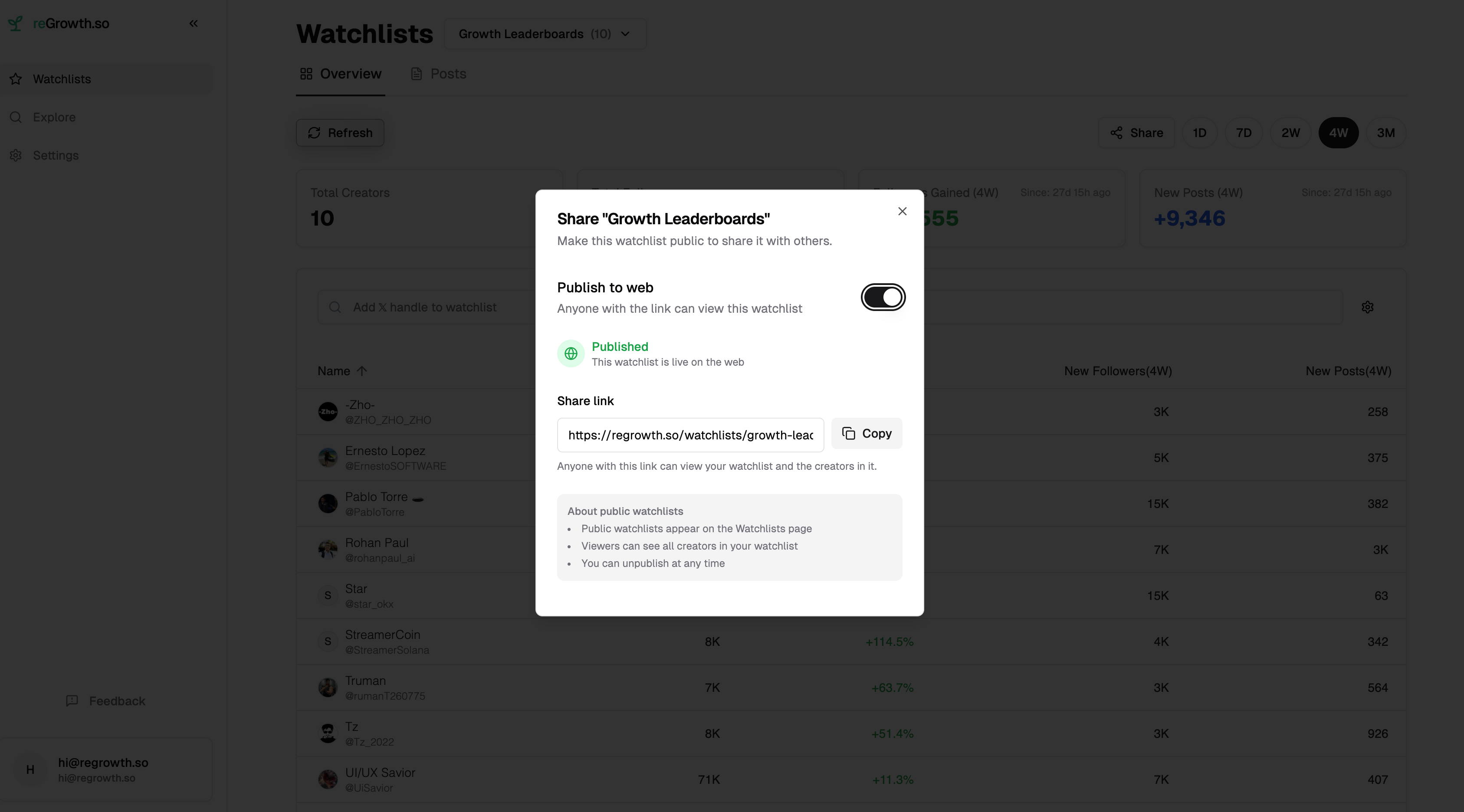 We're excited to announce two powerful new features that transform how you organize and share creator insights on reGrowth!