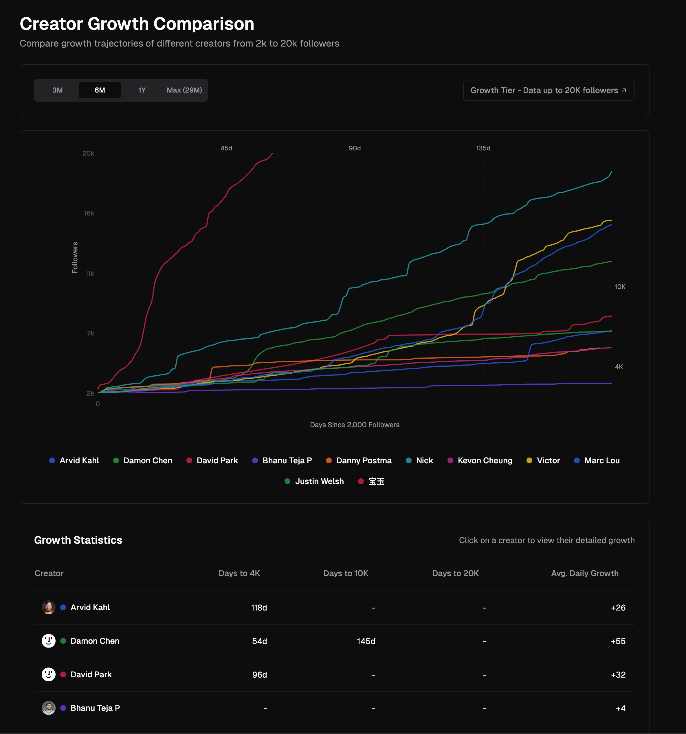 Creator Growth Comparison